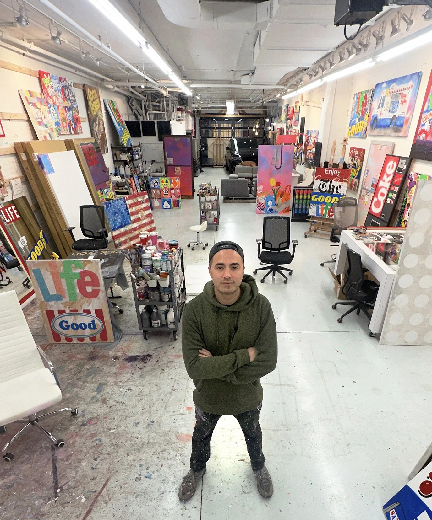 Jojo Anavim (b. 1985, New York) is a New York–based contemporary artist known for his layered reinterpretations of American consumer culture. Raised in Long Island by Persian-Jewish immigrant parents, Anavim developed an early fascination with commercial graphics, packaging, and brand imagery—visual languages that continue to shape his practice today.