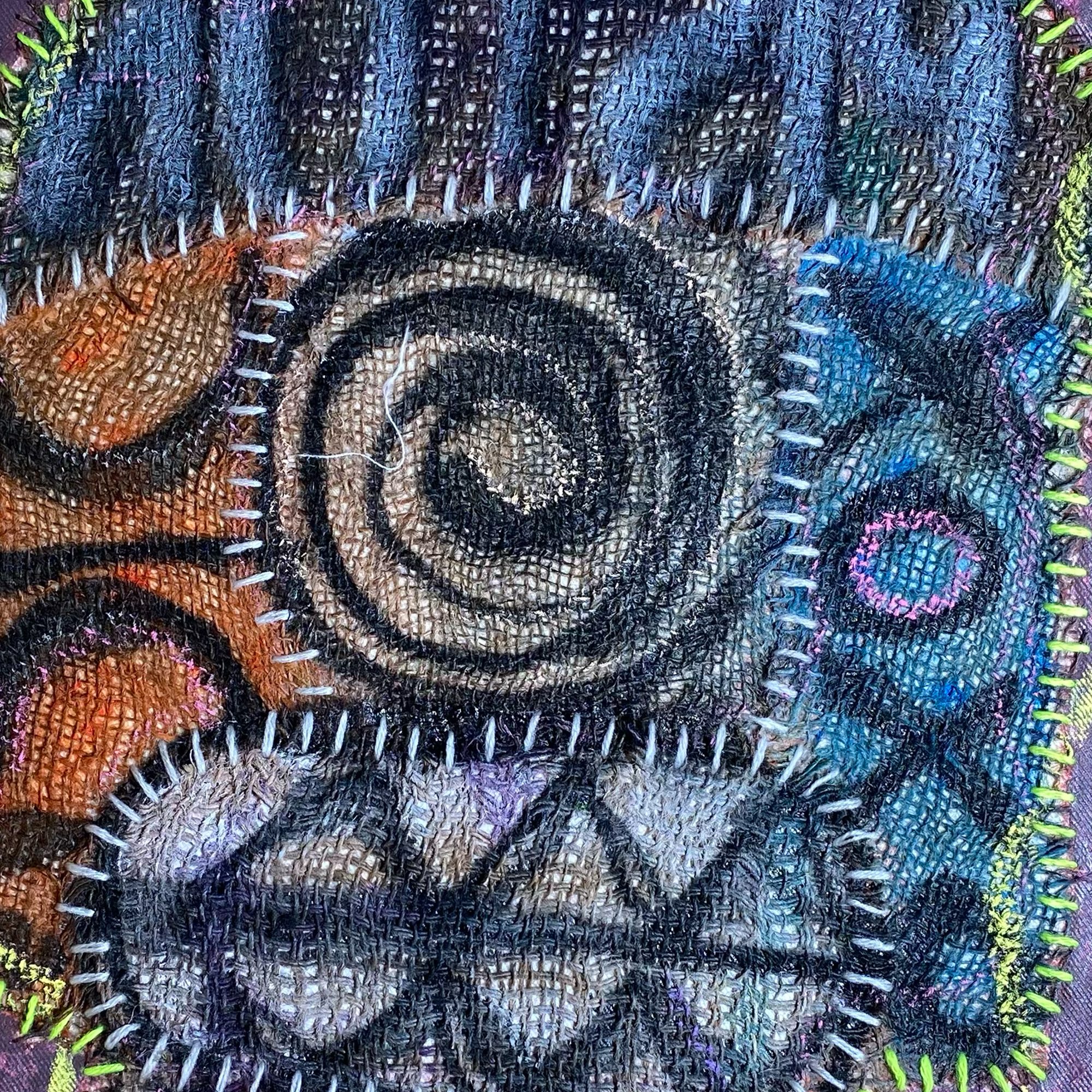 – Jute, Acrylic, Spray paint, Oil Pastel, Thread on Canvas
