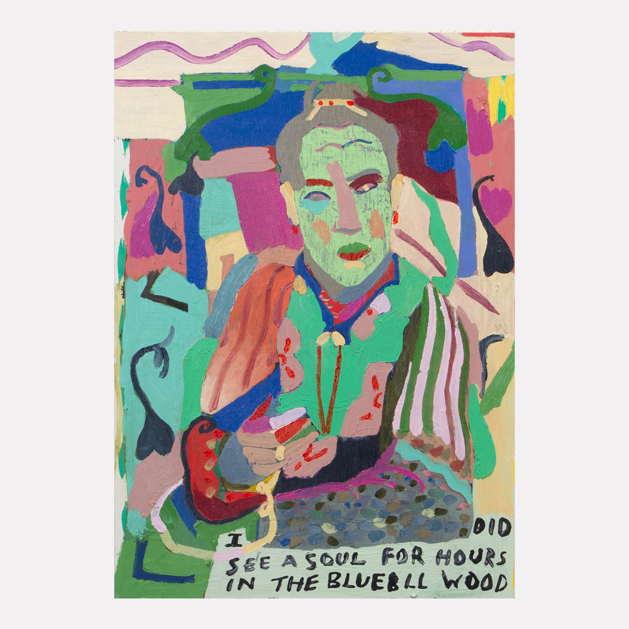 I think of the voice of painting as sitting somewhere between music and written language. My images evolve from drawings that I have made from life, and it is about attempting to move in an honest direction. I think of the titles of my paintings on the same plane as the surface of the work, being intrinsically linked together. They act as question marks. All I want with my image-making is to ask questions.