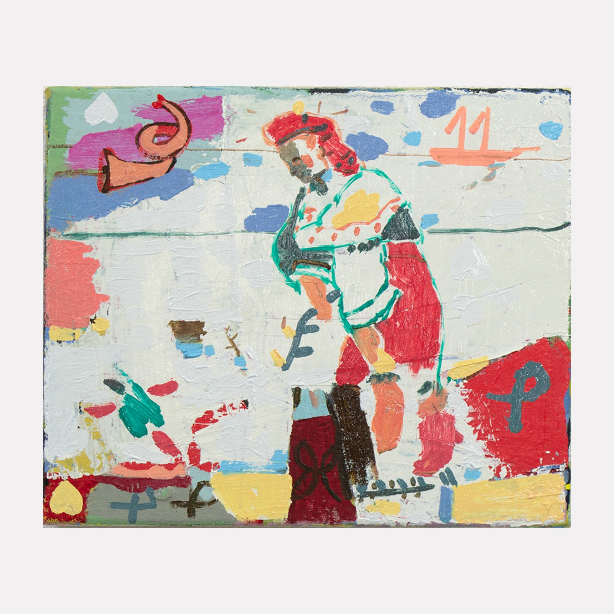 I think of the voice of painting as sitting somewhere between music and written language. My images evolve from drawings that I have made from life, and it is about attempting to move in an honest direction. I think of the titles of my paintings on the same plane as the surface of the work, being intrinsically linked together. They act as question marks. All I want with my image-making is to ask questions.
